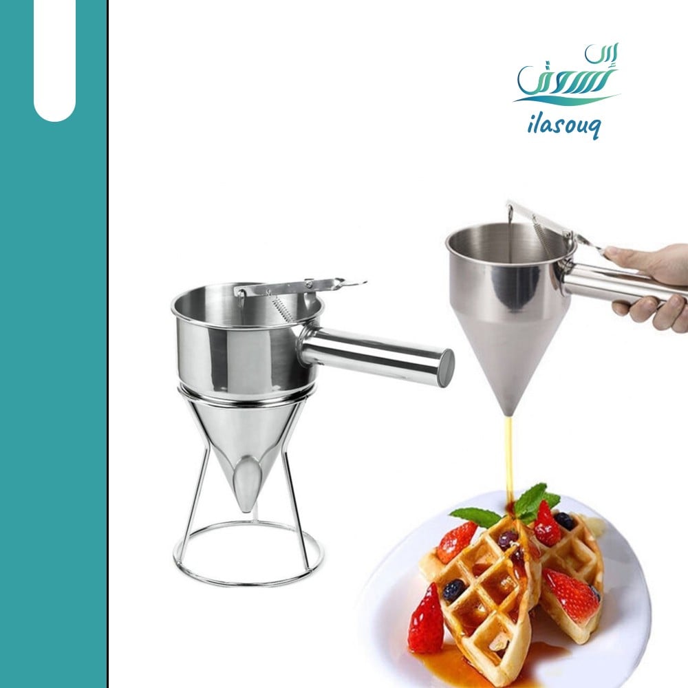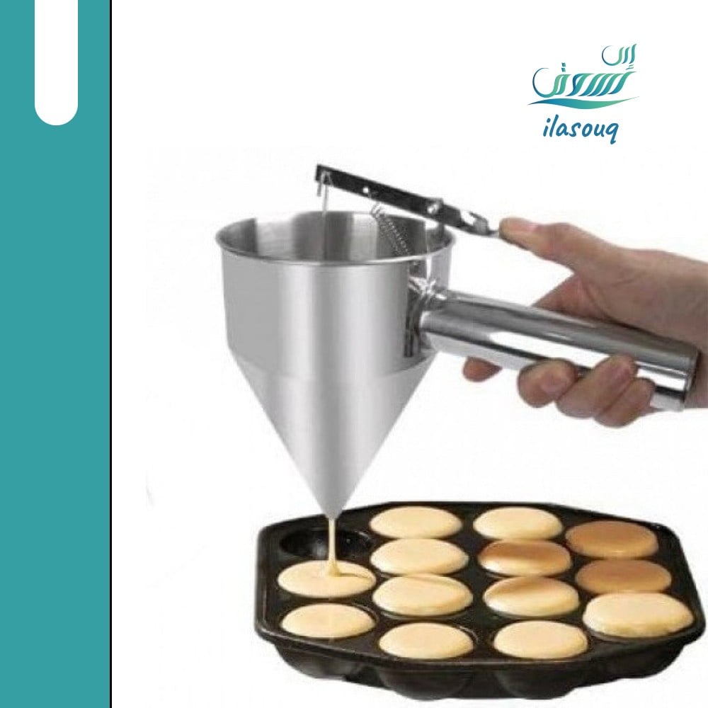 - استخدم ملعقة كبيرة أو كوب قياس لصب العجينة على الجهاز.